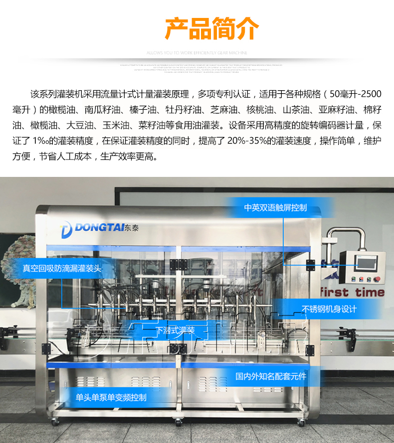 東泰機(jī)械至今有著二十年的研發(fā)生產(chǎn)經(jīng)驗(yàn),擁有著精良的技術(shù)團(tuán)隊(duì),東泰研發(fā)的橄欖油自動(dòng)灌裝機(jī),橄欖油灌裝流水線都是機(jī)電一體的新型設(shè)備,橄欖油自動(dòng)灌裝機(jī)計(jì)量采用高精度流量計(jì)與微電子數(shù)控儀表相結(jié)合的方式,灌裝精度相當(dāng)高,還可以方便的進(jìn)行無(wú)級(jí)調(diào)解灌裝容量,非常直觀,操作非常簡(jiǎn)單。選擇包裝設(shè)備就要選經(jīng)驗(yàn)豐富、技術(shù)超前,設(shè)備完善的的大企業(yè),東泰機(jī)械通過(guò)二十多年的努力和發(fā)展,現(xiàn)已成為集科研、設(shè)計(jì)制造、成套供應(yīng)、技術(shù)咨詢服務(wù)、工程總承包為一體的高科技型企業(yè)。東泰期待與您的合作,我們互利共贏!